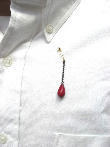 Mended Veil Blood Drop Pin Comes in a tiny clear plastic magnifier box. Another master work!